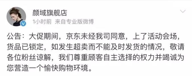 6月16日,京东正式向外界发表《京东女装业务部关于履行618促销承诺的说明》的声明,称有个别商家由于“众所周知”的原因提出撤出会场、退出活动要求,并将京东旗舰店内的同款商品标价大幅提高至远高于市场售价。